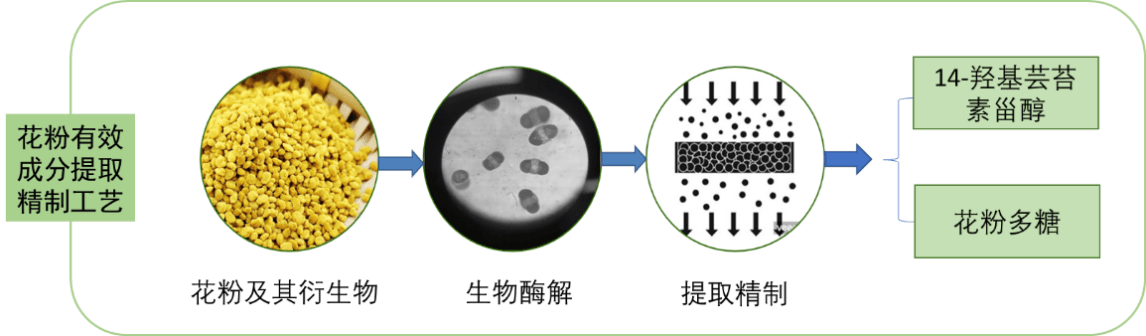 花粉多糖是以花粉為原料,分離得到水溶性花粉提取物。在提取過(guò)程中,引入了纖維素酶解破壁技術(shù),并配合一定程度的機(jī)械攪拌,在較為溫和的條件下破除油菜花粉壁,能夠最大程度的釋放花粉中花粉多糖等有效成分,實(shí)現(xiàn)花粉資源的高效利用。